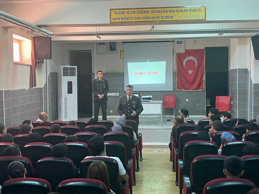 Milli Savunma Üniversitesi görevli personeli tarafından okulumuzda seminer verildi. Seminerde ; harp okulları ve meslek yüksek okulları tanıtıldı. Konuya ilişkin videolar ve fotoğraflarla verilen bilgiler pekiştirildi. Sunumun ardından gerçekleştirilen soru-cevap etkinliğinde öğrencilerin soruları yanıtlandı.